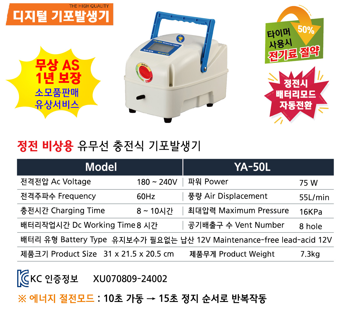 YA-50L – 디지털 유무선 충전식 기포발생기