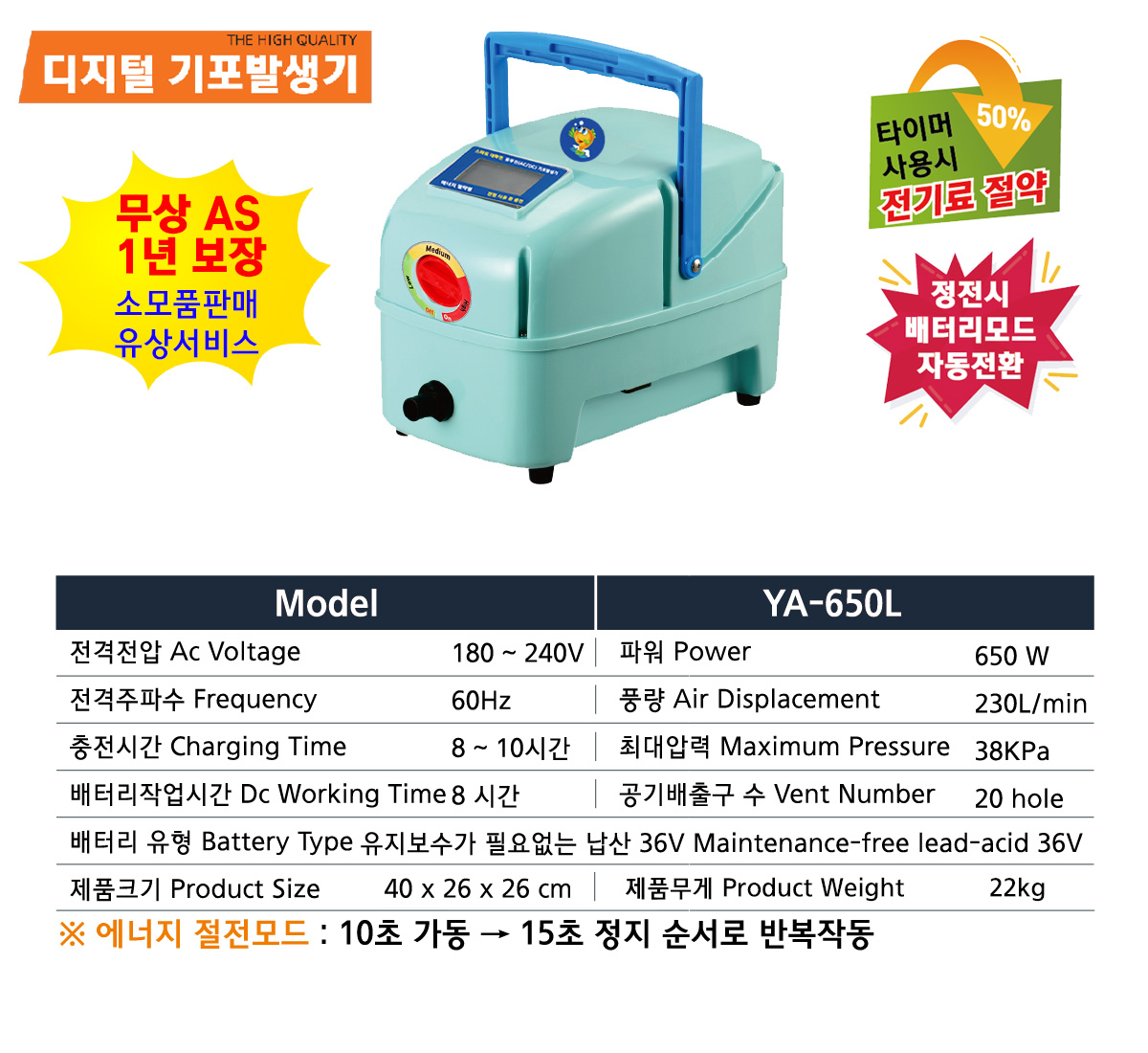 YA-650L – 디지털 유무선 충전식 기포발생기