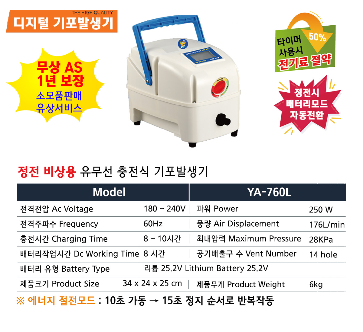 YA-760L – 디지털 유무선 충전식 기포발생기