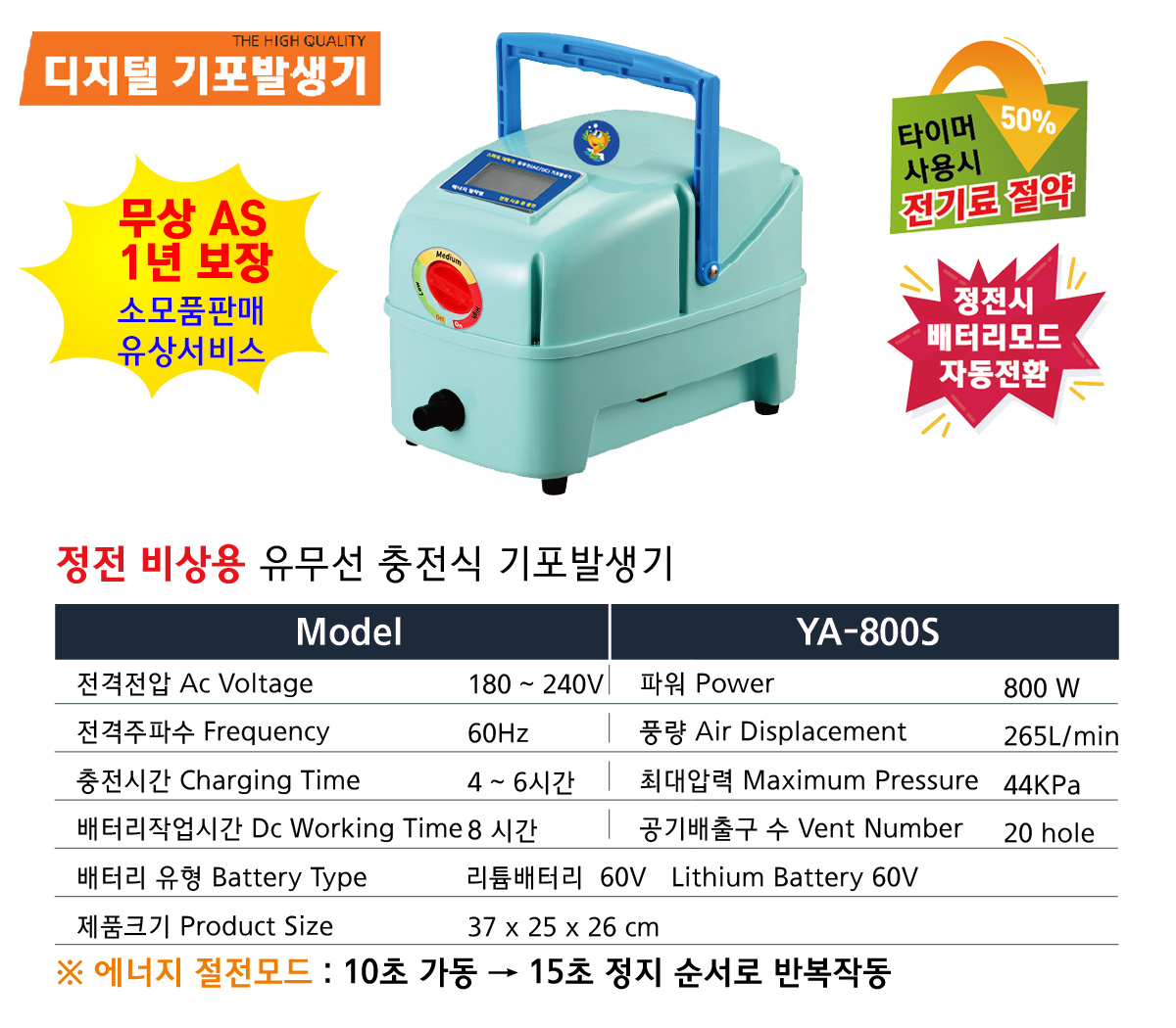 YA-800S – 디지털 유무선 충전식 기포발생기