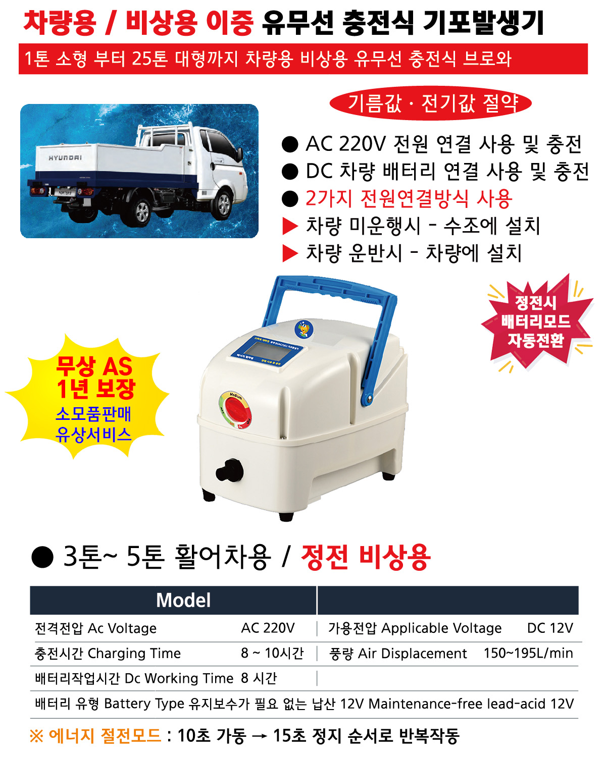 YA-AD35 – 차량용 / 비상용 이중 유무선 충전식 DC 기포발생기